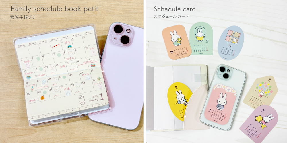 やわらかく手馴染みの良い「合皮表紙タイプ」は、落ち着いたカラーにミッフィーのワンポイント入り、オンオフ問わず使いやすいと好評です。