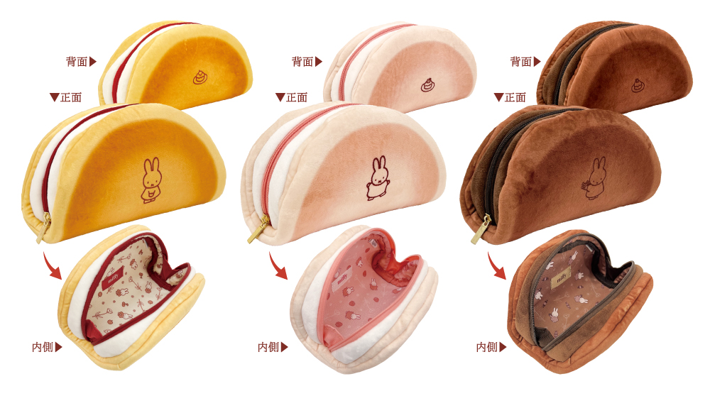 まるでクリームサンドみたいなポーチ! 外皮部分には焼印風のイラスト入り