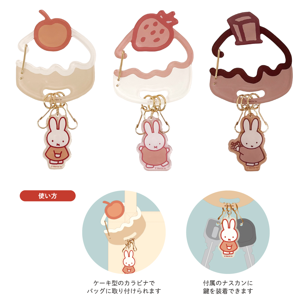 ケーキ型のアクリル製カラビナで、カバンの持ち手やベルトループに取り付けられます。