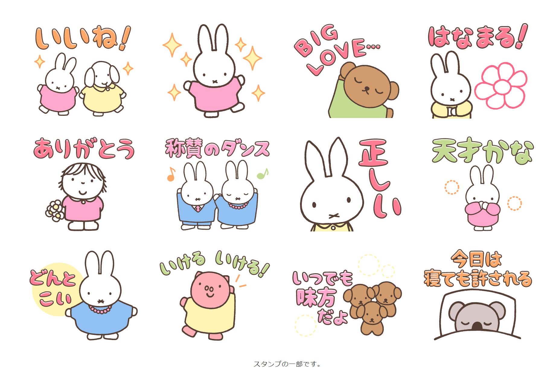 コミュニケーションアプリ「LINE」の「スタンプショップ」「LINE STORE」にて「みんな はなまる!ミッフィー」が販売中。
