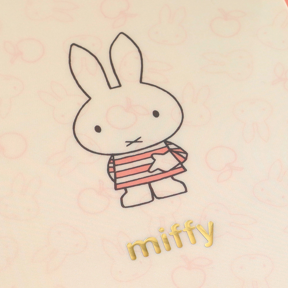 優しい色味の合皮を使用した、小物を持ち運ぶのにちょうど良いサイズ感のポーチ。ミッフィーのお顔型の引き手チャームがポイントです。