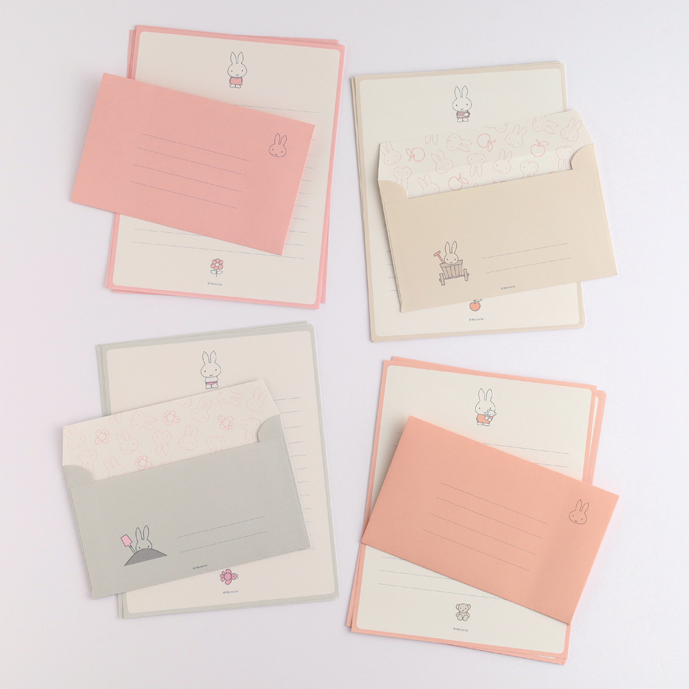 封筒の中にもミッフィーのパターン柄が印刷されており、開封した際に楽しいレターセットです。