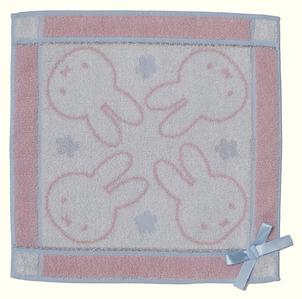 サテンリボンがかわいいミニタオルです。シルバーラメのアクセントが上品でおしゃれなデザインです。中国製