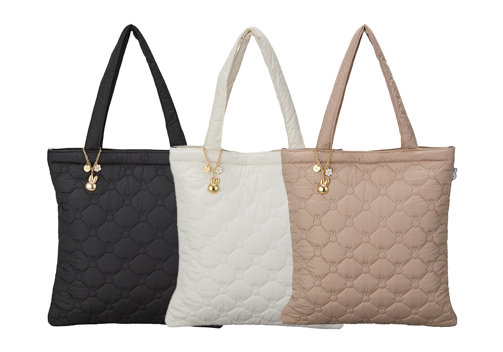ふわふわとした生地感で軽くて丈夫なミッフィーのキルティングトートバッグ。ミッフィーのチャーム付きです。